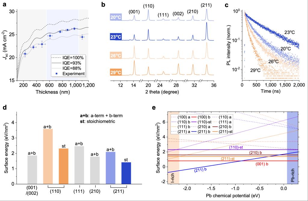 转载自北航新闻网10月18日电(通讯员 杨文强)2024年10月14日,《Nature》报道了我院罗德映教授和合作者在钙钛矿太阳能电池研究方面取得的最新进展:《Coherent growth of high-Miller-index facets enhances perovskite solar cells》。围绕反式钙钛矿太阳能电池面临“光子利用与电学损失”难以协同调控的关键技术挑战,该工作成功解密环境温度在钙钛矿半导体工艺中的重要作用,并基于此开发了能够实现钙钛矿微米级厚膜“光子利用与电学损失”协同调控的创新工艺技术,从而研制出高效稳定的反式钙钛矿太阳能电池。北航国际前沿交叉科学研究院罗德映教授、宁波东方理工大学韩兵助理教授、英国剑桥大学Samuel D. Stranks教授、英国牛津大学Henry J. Snaith院士、北京大学龚旗煌院士、北京大学朱瑞教授为通讯作者,北京亚州怡红院为主要通讯单位之一。