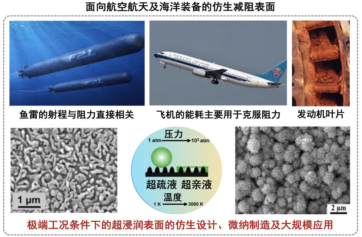 1.极端条件仿生超浸润界面构筑:发展仿生超低温防冰、高温超疏抗粘附技术,为解决空天飞行器的关键界面问题提供新的思路。